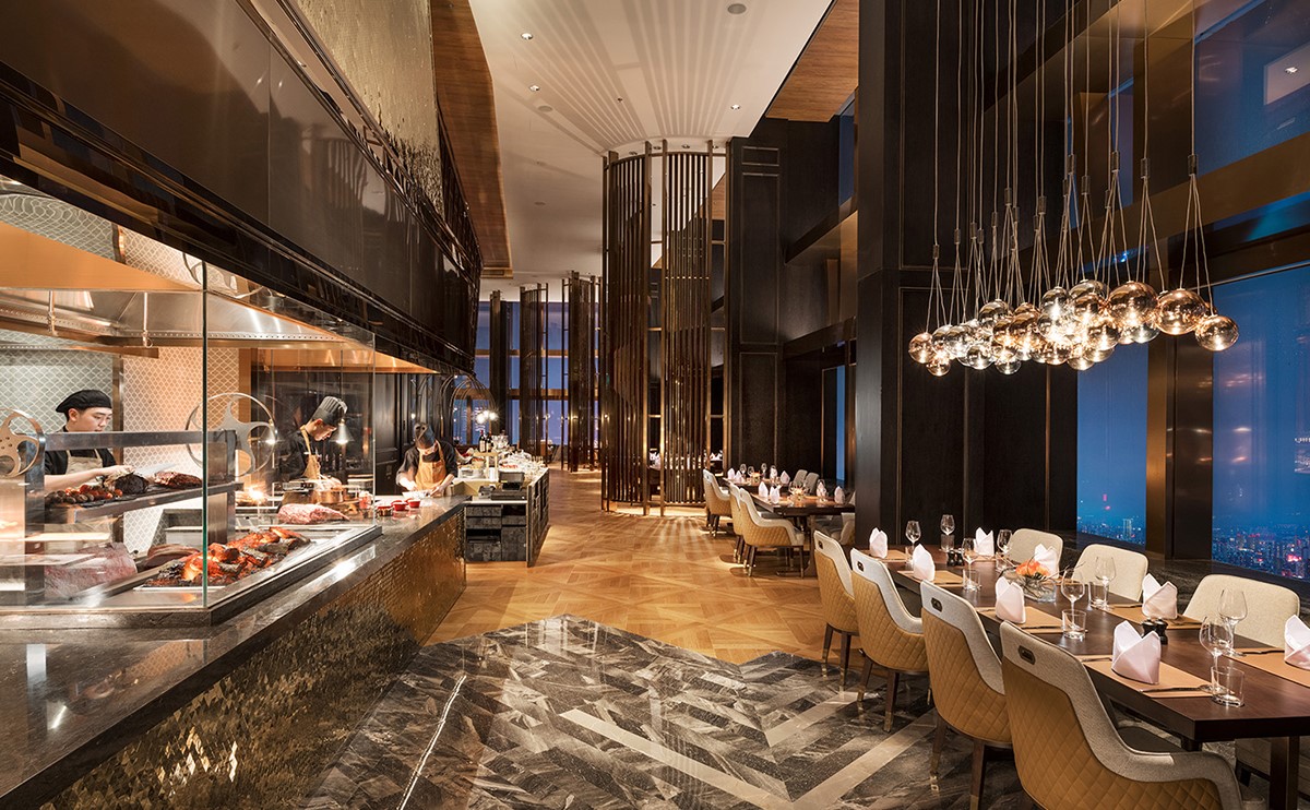 满中餐厅,提供传统的川菜和当地东北特色美食。“满”在汉语中是舒适、私人聚会和团体用餐。餐厅以“中国庭园”为设计理念,四个不同的空间构成,融入川剧变脸,四川茶楼等元素。