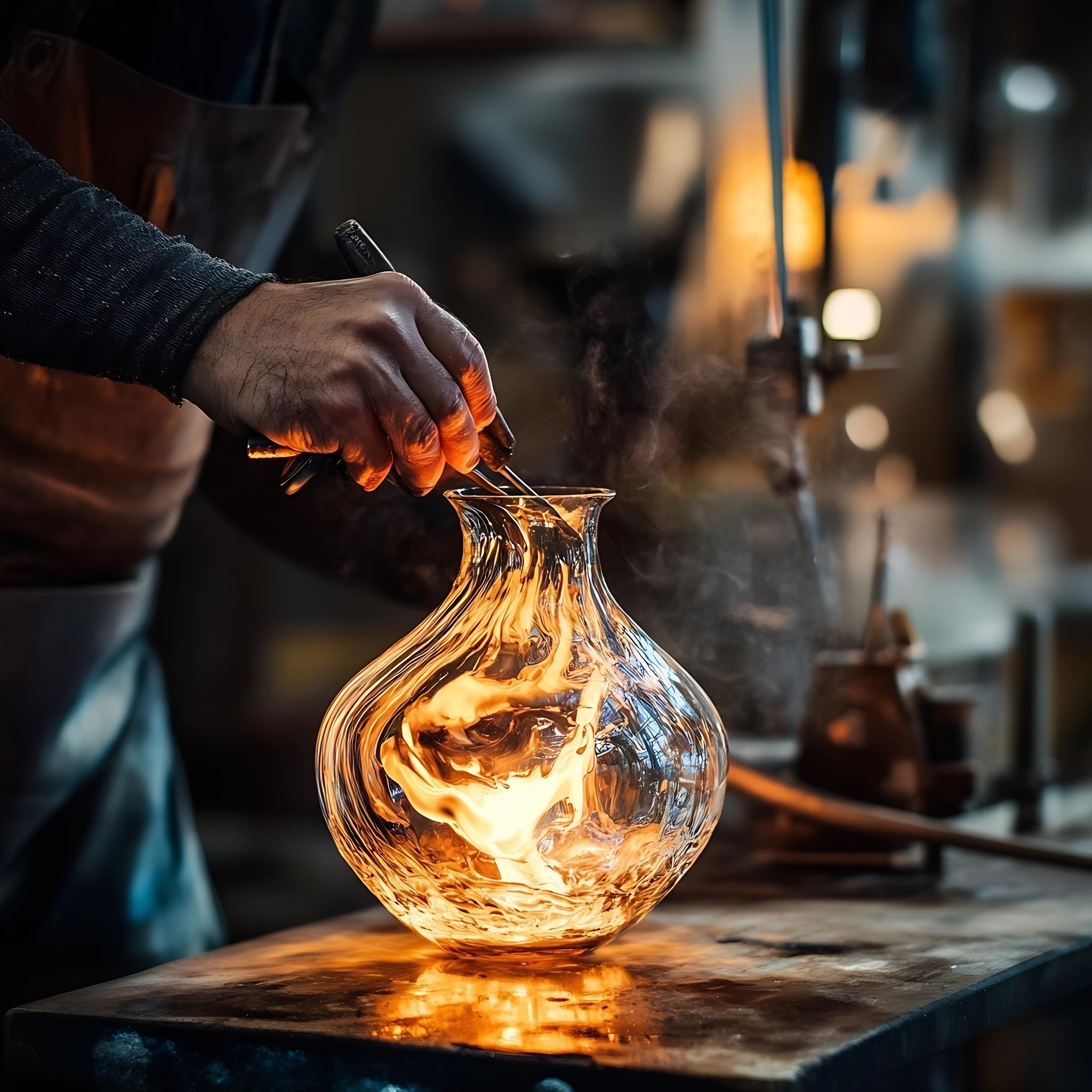 技术融合:传统工艺与现代技术结合:将数字化技术融入手工吹制流程,降低技术门槛、提升创作精度。例如,通过 3D 建模技术提前设计作品的三维模型,工匠可根据模型数据确定蘸料量、吹气力度等参数,减少试错成本;利用红外测温仪实时监测玻璃料的温度,避免因经验判断失误导致作品报废;在冷加工环节引入激光雕刻技术,在玻璃表面制作传统手工难以实现的精细图案(如微缩文字、复杂几何纹理),拓展作品的艺术表现力。