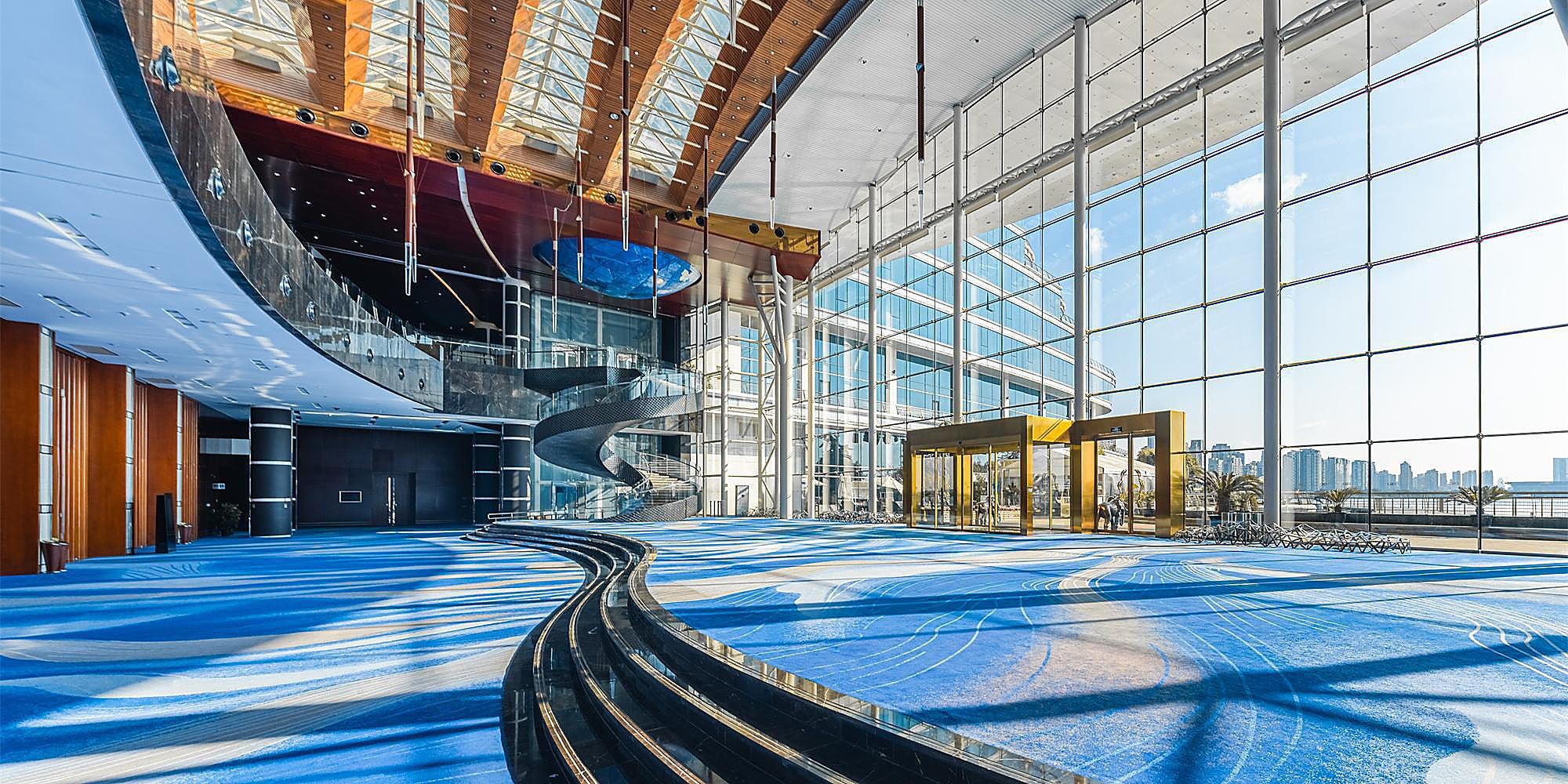 800平方米的宴会厅前厅是活动开始前鸡尾酒会的绝佳选择。透过四层高的落地玻璃墙,金鸡湖的美丽景致一览无余。
