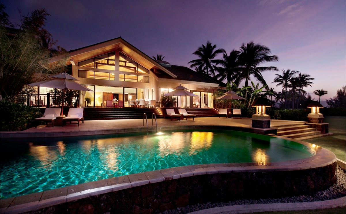 豪华的海滩别墅布置优雅,将现代化中国南部的设计风格同海南本地特色相结合。