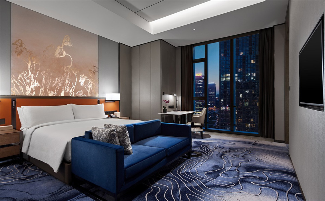 酒店共有299间宽敞舒适的客房及套房,明亮现代的客房设施可为您提供轻松舒适的入住体验。客房装饰极富现代感,挑高的天花和全景落地玻璃窗,给人以宽阔视界,可一览黔城的四季之景。别出心裁的Minibar设计更加彰显酒店的独特品味之感。完美的浴室设计及其巧妙的空间感,配以Crabtree & Evelyn的洗护产品,夜晚,以芳香放松身心,清晨,在此焕发一天精神活力。