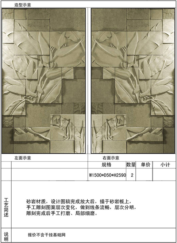 浮雕是雕刻的一种,雕刻者在一块平板上将他要塑造的形象雕刻出来,使它脱离原来材料的平面。浮雕是雕塑与绘画结合的产物,用压缩的办法来处理对象,靠透视等因素来表现三维空间,并只供一面或两面观看。酒店浮雕,是运用在酒店空间里的酒店软装产品。
