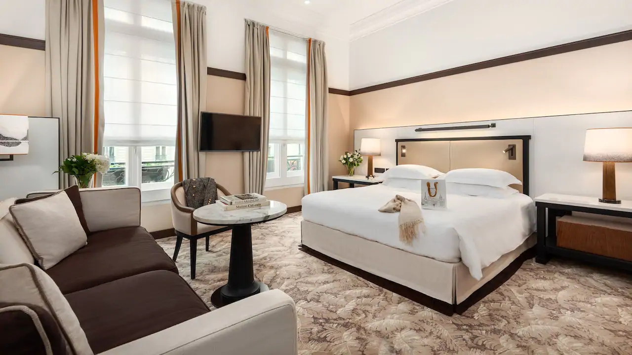 对于终极私密的陈列室,酒店宽敞的总统套房位于 7 楼,可以完全私有化以展示客人的收藏品,从其露台上可以俯瞰巴黎屋顶的全景。